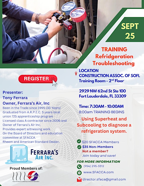 South Florida Air Conditioning Contractors Associations offers training for members and guests. Register Today – space is limited!